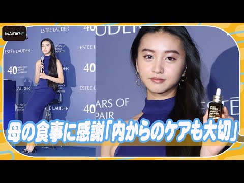 木村拓哉さんと工藤静香さんの次女でモデルのKoki,(コウキ)さんが8月5日、東京都内で行われた「エスティ ローダー 美容液『アドバンス ナイト リペア』40周年記念イベントオープニング記者発表会」に出席した。自身の美容法を聞かれると「幼い頃から母が食事管理してヘルシーな食べ物を心がけてくれました」と感謝を口にし、「外からのケアもとても大切ですが、内からのケアも大切だと教わったので、それを心がけています」と話した。