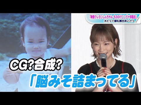 人気アニメ「クレヨンしんちゃん」の第30作となる劇場版最新作「映画クレヨンしんちゃん もののけニンジャ珍風伝(ちんぷうでん)」(橋本昌和監督)の大ヒット御礼舞台あいさつが5月1日、東京都内で行われ、ゲスト声優を務めた川栄李奈さん、お笑いコンビ「ハライチ」が登場した。