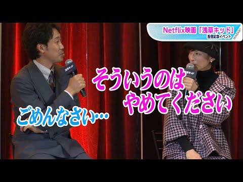 俳優の大泉洋さんと柳楽優弥さんがダブル主演を務めるNetflix映画「浅草キッド」(劇団ひとり監督)の配信記念イベントが12月7日、浅草フランス座演芸場東洋館(東京都台東区)で行われ、大泉さん、柳楽さん、劇団ひとり監督のほか、門脇麦さん、お笑いコンビ「ナイツ」の土屋伸之さん、鈴木保奈美さんらが登場した。