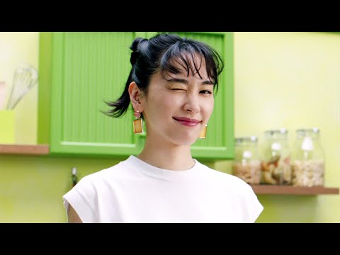 CMは、新垣さんが撮影スタジオで自撮りをしているシーンからスタート。それもつかの間、新垣さんは瞬く間に不思議な映像世界へと入り込んでいく。大きな惑星が見える夜空の下に広がる、イラストや写真でコラージュされた街並み。その中を新垣さんは軽やかな足取りで進んでいく。場面は変わり、常夏のビーチを背景にセットされたキッチン。新垣さんはラーメンのどんぶりに卵を割り落として、ウインク。そして、砂漠に真っすぐ伸びる道を車で疾走していたかと思えば、大きなサメに乗って海の遊泳を楽しむ。