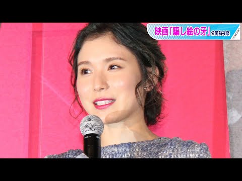 女優の松岡茉優さんが3月25日、東京都内で行われた俳優の大泉洋さんの主演映画「騙(だま)し絵の牙」(吉田大八監督)の公開前夜祭に登場した。個性的な柄のブルー系のワンピースで、イレギュラーヘムから品良く脚を見せていた。