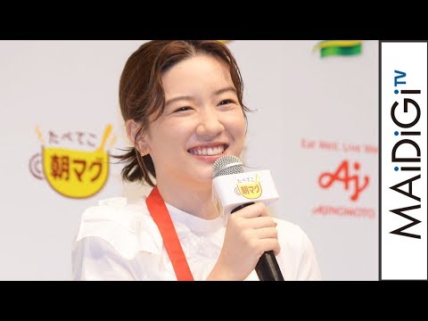 イベントでは、クノールカップスープを使って1分間で作る朝食「朝マグ」作りに、永野さんがエプロン姿で挑戦した。