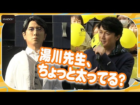 制作期間に約3カ月を要したという“超巨大湯川先生”は、メガネから服まで手作りの特注品。9月27日まで同所に置かれるという。柴咲さんは「こういうのが作られるくらい(湯川先生は)象徴的なキャラクター」といい、白衣のポケットに手をつっこんだポーズに、北村さんは「なんなら(戎橋にある有名なグリコの看板のように)手を挙げてたらよかった」と話していた。イベントにはコロナ禍で入場制限の中、最大収容人数の3000人が集まった。