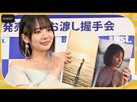お気に入りとして、水着姿でビーチにたたずむカットを挙げ「天候に恵まれ、タイミングよく海に反射してキレイなショットになったと思います」と語った。写真集は、A4判、112 ページ。価格は3520円。