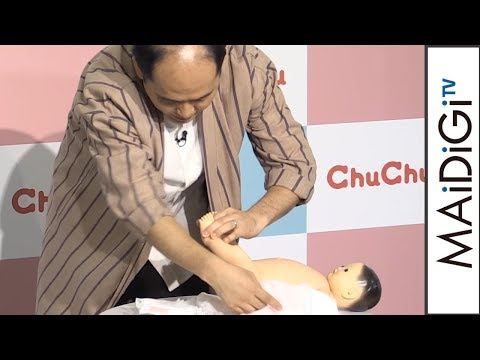 「ChuChu」は、「家族みんなで。Happy な育児。」をテーマに、哺乳瓶やおむつの臭い消しスプレーなどを展開する。イベントでは商品紹介のほか、斎藤さんが育児芸人への意気込みを語り、新米パパ代表としておむつ替えやスキンシップを実演する“イクメン”チェックに挑戦した。