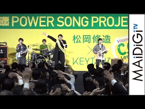 テニスプレーヤーの松岡修造さんとロックバンド「KEYTALK」が4月10日、杉並学院高等学校(東京都杉並区)の入学式にサプライズ登場し、C.C.レモンオリジナルソング「Cheers!」を生披露した。