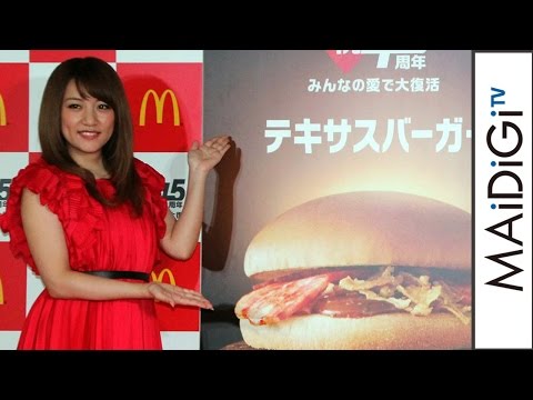 元AKB48の高橋みなみさんが9月28日、東京都内で行われた日本マクドナルドの「45周年記念キャンペーン」発表会に出席。高橋さんは、マクドナルドの大ファンだといい、同キャンペーンで過去の人気商品が復活し、CMにも起用され「心の底からうれしい! やはり愛は届くんだなと思いました」と満面の笑み。CMで挑戦している“食リポ”もステージ上で生披露し、マクドナルド商品のおいしさをアピールした。
