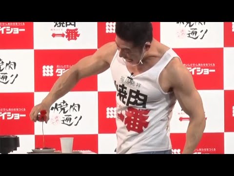お笑い芸人のなかやまきんに君が2月25日、東京都内で行われたダイショー“やきにくのタレ営業部長”就任記念!新ウェブCM発表会に登場した。