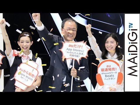 女優の足立梨花さんやアイドルグループ「SKE48」の松井珠理奈さんらが9月16日、東京・新宿のau SHINJUKUで行われたスマートフォン「iPhone 7/iPhone 7 Plus」の発売イベントにKDDIの田中孝司社長とともに登場。