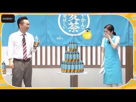 俳優の小芝風花さんとお笑いコンビ「かまいたち」がこのほど、東京都内で行われた「やかんの麦茶ゴクゴク体験イベント開催記念PR発表会」に登場。麦茶を飲んでいるシチュエーションを当てるクイズが行われ、山内健司さんが演技に挑戦した。