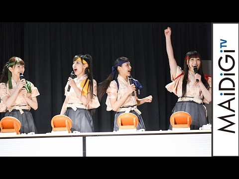アイドルグループ「モーニング娘。’17」の譜久村聖さんと飯窪春菜さん、「アンジュルム」の和田彩花さん、中西香菜さんが4月6日、東京都内で行われた「Hello! Project ひなフェス アイドル生合戦 国盗り天下統一編」体験会に登場。16日の本番ではモーニング娘。とアンジュルムがそれぞれ2チームずつ、計4チームに分かれて“国盗り合戦”を行う予定で、この日は、人気の音楽ゲーム「太鼓の達人」を使ったデモンストレーションが行われた。