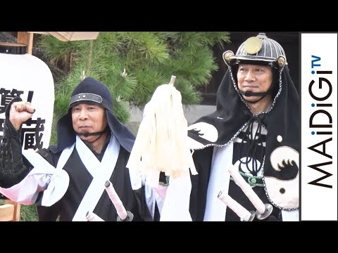 お笑いコンビ「ナイティナイン」の岡村隆史さんが11月11日、赤穂浪士の墓所として知られる泉岳寺(東京都港区)で行われた主演映画「決算!忠臣蔵」(中村義洋監督、11月22日公開)の公開直前イベントに、ダブル主演を務める俳優の堤真一さん、中村監督と共に登場。討ち入り装束姿で大ヒット祈願&浅野内匠頭の墓前を参拝した。