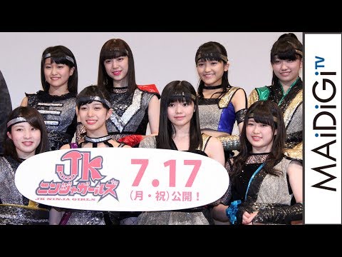 「JKニンジャガールズ」は、ある女子高を舞台に日夜東京の平和を守る忍者の末裔(まつえい)・JKニンジャガールズと大阪の“ニセニンジャガール”ことなにわニンジャガールズの争いを描くコメディー。7月17日に公開される。