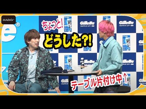 お笑いコンビ「EXIT」のりんたろー。さん、兼近大樹さんが9月1日、東京都内で行われた「ジレット プログライド エアー 電動新製品発表会」に登場した。