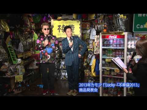 歌手の嘉門達夫さんと振付師のラッキィ池田さんが12月12日、都内で行われた「ヴィレッジヴァンガード」の新しい形の福袋「不幸袋2013」発表会に1日だけのユニット「2013年カモン!!Lucky」として登場し商品をPRした。「不幸袋2013」は、どんなに強い不幸にも対抗できるよう、極悪な不幸を追求した完全オリジナルの商品を多数詰め合わせた福袋。(毎日新聞デジタル)