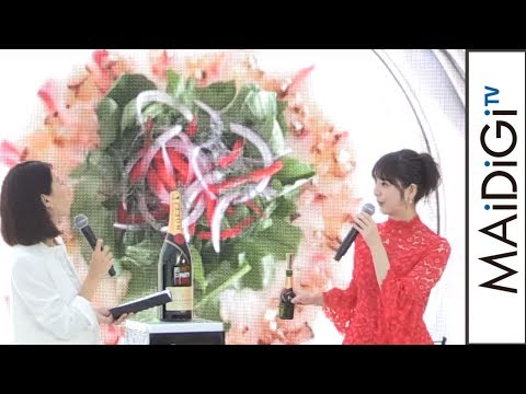 この日のセレモニーでは、4月にお笑いコンビ「アンジャッシュ」の渡部建さんと結婚した佐々木さんに「ハッピーウエディング」とメッセージの入った3リットルのシャンパンの大ボトルがプレゼントされた。佐々木さんは「うれしい! 名前も入っていますね。記念日とかに一緒に飲みたいな。料理を作りながら、皆さんに食べてもらいながら乾杯したい」と喜んでいた。
