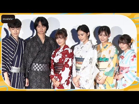 俳優の森七菜さん、奥平大兼さんが7月6日、東京都内で行われた映画「君は放課後インソムニア」(池田千尋監督)の公開御礼七夕イベント に、上村海成さん、安斉星来さん、永瀬莉子さん、川崎帆々花さん登場。七夕にちなみ、浴衣姿で現れた森さんは「すごくきれいですよね。みんな(共演者)のことガン見していました」と語った。