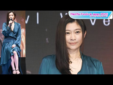 女優の篠原涼子さんがこのほど、東京都内で開催された「Netflix Festival Japan 2021」に出席した。2022年に配信予定のNetflixのオリジナルシリーズ「金魚妻」に主演する篠原さんは、シックなグリーン系のドレス姿で登場。胸元がざっくりと開いたカシュクール風のデザインで美肌をのぞかせ、フィッシュテールの裾から美脚もすらり。ロングヘアをワンサイドに寄せて、大人の魅力を漂わせていた。