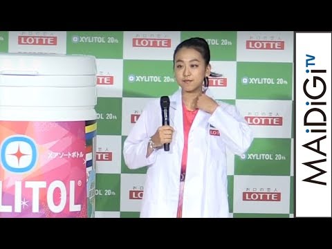 フィギュアスケートの元世界女王の浅田真央さんが10月12日、ロッテの「キシリトールガム」発売20周年記念プロジェクト発表会に登場した。発表会では、浅田さんがデザインした「キシリトールガム」の巨大パッケージ(高さ約1メートル)もお披露目。浅田さんは「明るい色、星の形が大好き。好きなデザインに仕上がったのでうれしかった」と話した。40万種類以上のデザインがある「キシリトールガムXアソートボトル」は17日から発売される。オープン価格(実勢価格は760円前後)。