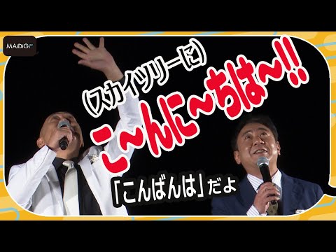 お笑いコンビ「錦鯉」の長谷川雅紀さん、渡辺隆さんが10月20日、東京スカイツリー(東京都墨田区)で行われた「東京スカイツリー開業10周年記念 特別ライティングデザイン募集 Supported by Panasonic」受賞者発表・点灯式に登場した。