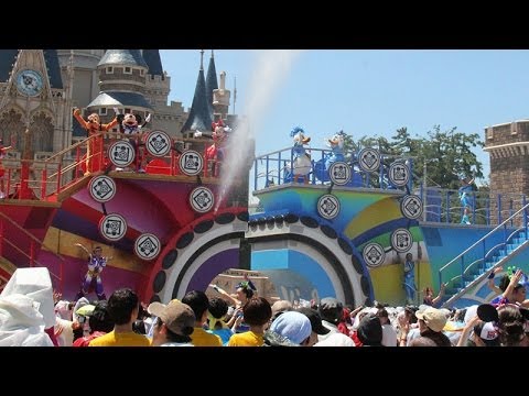 東京ディズニーランド(TDL、千葉県浦安市)の夏のイベントが7月8日、スタートし、新しいショー「雅涼群舞(がりょうぐんぶ)」がお披露目。ミッキーマウスらが二つのチームに分かれ、シンデレラ城前でダンス合戦を繰り広げた。ウォーターキヤノンや舞台からは大量の水が吹き上がり、ゲストは水をかぶったようにずぶ濡れになって盛り上がった。