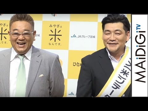 宮城県出身のお笑いコンビ「サンドウィッチマン」が「平成29年産 宮城米」のCMキャラクターに選ばれ、9月28日に東京都内で行われた説明会に出席した。