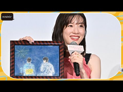 俳優の永野芽郁さんが5月31日、東京都内で行われた映画「からかい上手の高木さん」(今泉力哉監督)の初日舞台あいさつに共演した高橋文哉さん、齋藤潤さんらと出席。後輩の齋藤さんからプレゼントされたイラストを公開し、額縁に入れて自宅に飾っていることを紹介した。