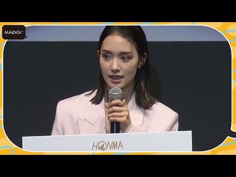 俳優の剛力彩芽さんと女子プロゴルファーのイ・ボミさんが10月27日、東京都内で行われた「本間ゴルフ 事業戦略・新製品発表会」に登場した。