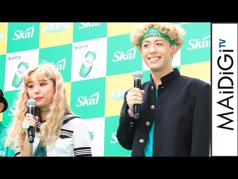 読者モデルカップルとして人気のぺこさんとりゅうちぇるさんが6月5日、東京都内で行われた「“放課後炭酸 愛のスコール”キャンペーン開始記念PRイベント」に学生服姿で登場した。