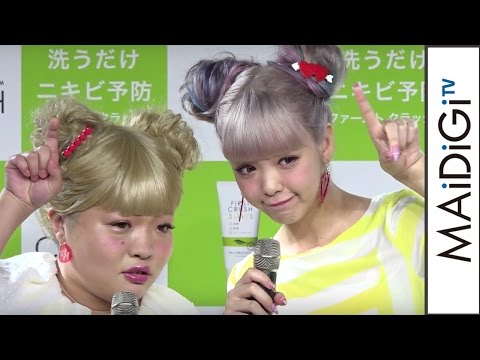 モデルの藤田ニコルさんが6月21日、東京都内で行われたニキビケア「ファーストクラッシュ」のイメージキャラクター就任イベントに出席。イベントには藤田さんとそっくりと話題になっているお笑いコンビ「おかずクラブ」のオカリナさんも登場し、2人で“にこるんポーズ”を披露した。