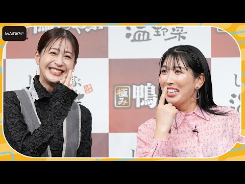 俳優の松本若菜さんとお笑いトリオ「3時のヒロイン」が10月1日、東京都内で行われた「しゃぶしゃぶ温野菜」の新商品発表会に登場した。