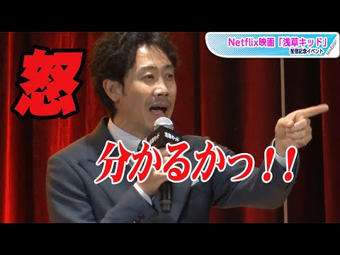 俳優の大泉洋さんと柳楽優弥さんがダブル主演を務めるNetflix映画「浅草キッド」(劇団ひとり監督)の配信記念イベントが12月7日、浅草フランス座演芸場東洋館(東京都台東区)で行われ、大泉さん、柳楽さん、劇団ひとり監督のほか、門脇麦さん、お笑いコンビ「ナイツ」の土屋伸之さん、鈴木保奈美さんが登場した。