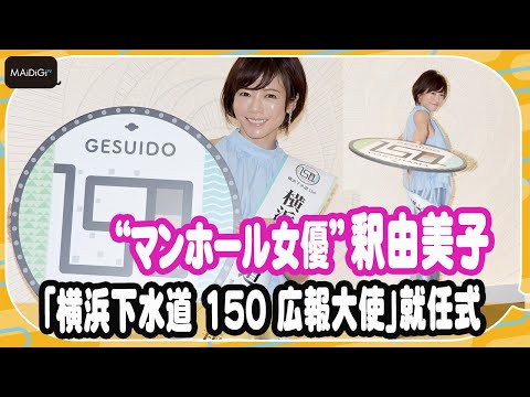 女優の釈由美子さんが、横浜下水道の広報活動をする「横浜下水道 150 広報大使」に就任し7月26日、横浜市庁舎(同市中区)であった就任式に出席した。釈さんは2018~2019年に放送された特撮ドラマ「仮面ライダージオウ」で、マンホールで戦う敵を演じて「マンホール女優」と呼ばれるようになり、今回の起用理由の一つになった。
