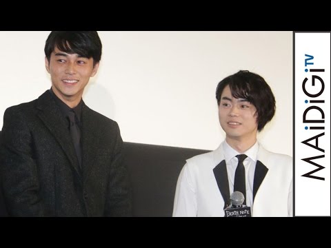 「デスノート Light up the NEW world」は、月を藤原竜也さん、Lを松山ケンイチさんが演じた前作「デスノート」から10年後が舞台。東出さんが「デスノート対策本部」のエース捜査官の三島創、池松さんが名探偵「L」の後継者・竜崎、菅田さんがキラ信奉者のサイバーテロリスト・紫苑優輝を演じる。