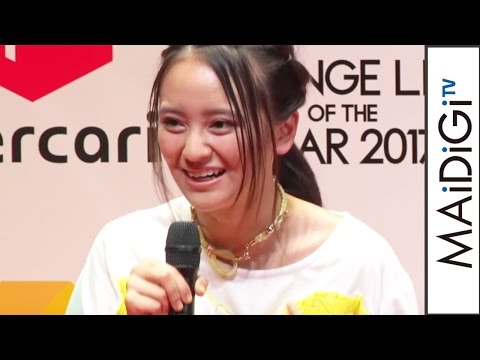 モデルでタレントの岡田結実さんが3月15日、東京都内で行われたフリマアプリ「メルカリ」が主催する「第2回 CHANGE LIFE OF THE YEAR 2017」授賞式にアイドルグループ「AKB48」の小嶋陽菜さん、お笑いタレントの渡辺直美さんらと出席。岡田さんは、ゆったりした白ベースのトップスにストライプのスカート、渡辺さんは黒のジャケットにピンクのオールインワン姿で登場した。