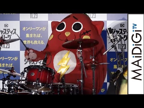 【動画】にゃんごすたー、見事なドラム演奏披露!ふなっしーとバンド結成” 映画「ジャスティス・リーグ」イベント2