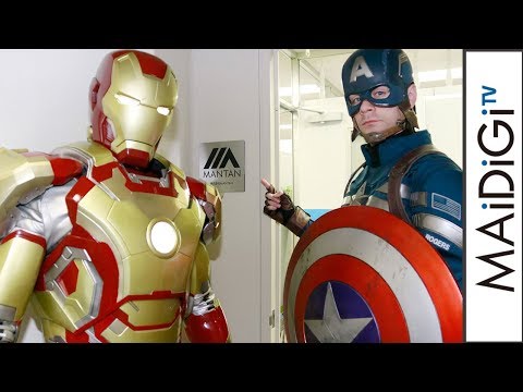 米マーベルコミックのヒーロー「アイアンマン」と「キャプテン・アメリカ」がこのほど、27日公開の映画「アベンジャーズ/インフィニティ・ウォー」(アンソニー・ルッソ、ジョー・ルッソ監督)PRのため、「MANTANWEB」編集部を訪れた。