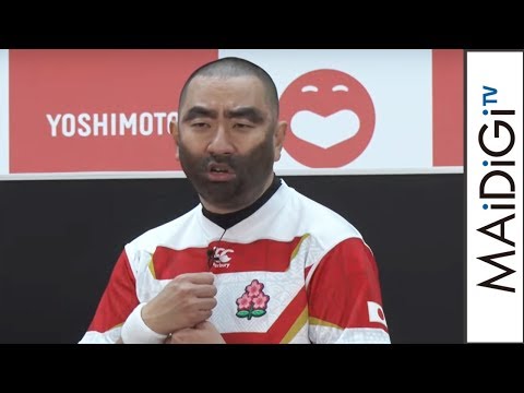 アイドルグループ「吉本坂46」の2期生オーディション1次審査合格者発表会が10月29日、東京都内で行われ、お笑いコンビ「レイザーラモン」のRGさんが、ラグビー日本代表のリーチ・マイケル選手のものまねで登場した。