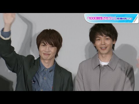 SNSで話題となったきくちゆうきさんのマンガ「100日後に死ぬワニ」が原作の劇場版アニメ「100日間生きたワニ」の初日舞台あいさつが7月9日、東京都内で行われ、主人公・ワニ役の声優を務めた神木隆之介さん、親友のネズミ役の中村倫也さんらが登場した。