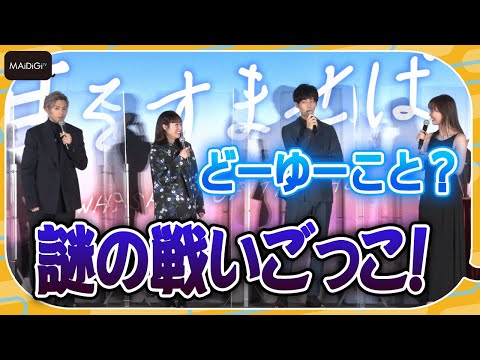 女優の清野菜名さん、俳優の松坂桃李さんが10月14日、東京都内で行われた映画「耳をすませば」(平川雄一朗監督)の公開初日舞台あいさつに登場した。