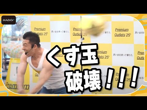 お笑い芸人のなかやまきんに君が6月5日、東京都内で行われた「プレミアム・アウトレット日本上陸25周年PRイベント」に出席。なかやまきんに君がくす玉のひもを勢いよく引っ張ったため、くす玉は割れずにそのまま地面に落ちるという場面があった。