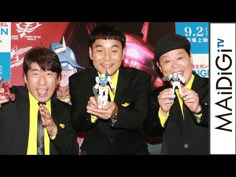 「機動戦士ガンダム THE ORIGIN」は、アニメ「機動戦士ガンダム」のキャラクターデザインや作画を担当した安彦良和さんの同名マンガを基に描くシリーズ。イベントは、同アニメが、2日から4週間限定で劇場上映されることを記念して開催された。イベントでは、同作で活躍するガイア・オルテガ・マッシュの3人組「黒い三連星」にちなんで、お笑い界の「黒い三連星」に扮(ふん)した3人が、「ジオン軍」への入隊テストとして、ガンダムクイズに挑戦した。