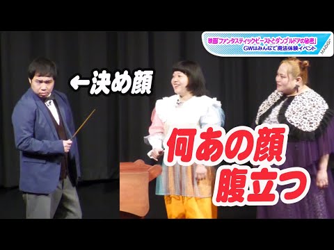 映画「ファンタスティック・ビーストとダンブルドアの秘密」(デイビッド・イェーツ監督)のイベントが4月28日、東京都内で行われ、お笑いコンビ「霜降り明星」のせいやさん、「おかずクラブ」のオカリナさん、ゆいPさんが登場した。
