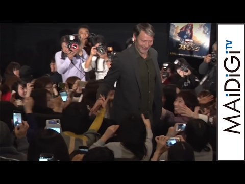 デンマーク出身の俳優マッツ・ミケルセンさんが1月27日、東京都内で行われた映画「ドクター・ストレンジ」(スコット・デリクソン監督)の初日舞台あいさつに来日ゲストとして登場した。ミケルセンさんが姿を現すと、会場に詰めかけた女性ファンからは「マッツー!」などと大歓声が上がった。この日はファンによる撮影タイムも設けられ、観客がスマートフォンなどを手に撮影を始めると、ミケルセンさんは自ら客席の中まで入っていくサービスを行い、会場を沸かせていた。