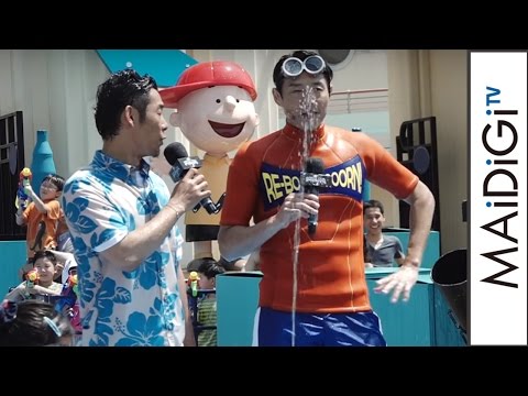 この日は、7月1日からスタートする同パークの夏のイベント開幕を前に、招待された約500人の親子ゲストとともに、松岡さんは、水鉄砲の撃ち合いや、大量の水が降り注ぐ「ウォーター・キャノン」などでずぶぬれになって、ひと足早く“やり過ぎの夏”を体験した。「子供だけじゃなくて、お父さんお母さんも、家族でリ・ボーンしなきゃ」と、熱く訴えた松岡さんだが、話している最中も水鉄砲で攻撃し続ける子供たちに「ちょっと待て! お母さん、教育どうなってるの? お父さんがかけてどうする!」とたじたじ。それでもはしゃぐゲストたちに「君たちは、リ・ボーンしすぎだ!」と叫んで、会場を爆笑させていた。