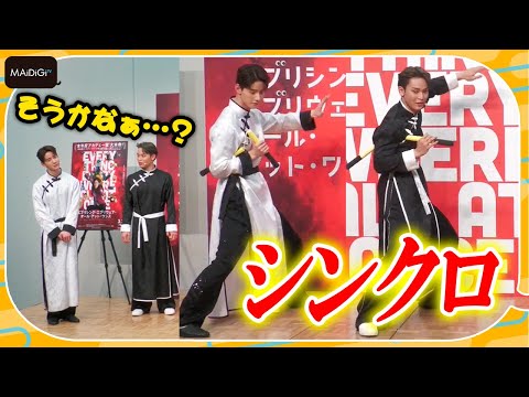 ボーイズグループ「JO1」の與那城奨さんと佐藤景瑚さんが2月28日、東京都内で行われた映画「エブリシング・エブリウェア・オール・アット・ワンス」(3月3日公開)の大ヒット祈願イベントにお笑いコンビ「野性爆弾」のくっきー!さんとともに登場した。