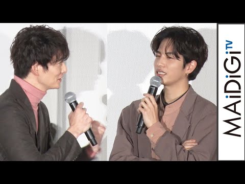 俳優の岡田将生さんと志尊淳さんが2月10日、ダブル主演映画「さんかく窓の外側は夜」の大ヒット御礼舞台あいさつに、森ガキ侑大監督と出席した。