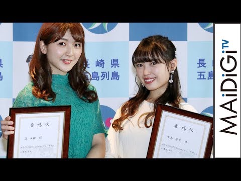 新上五島町は、長崎県五島列島の北部に位置し、町の大部分が西海国立公園に指定されている。白浜の自然海浜が多く点在し、海はダイバーたちからも人気を集めている。中島さんと森さんは水泳やダイビングが特技で海がよく似合うという理由で、アンバサダーに選ばれた。今後は、浜辺のクリーンウオーキングなど、環境保全活動へ参加して、同所の魅力を発信する。
