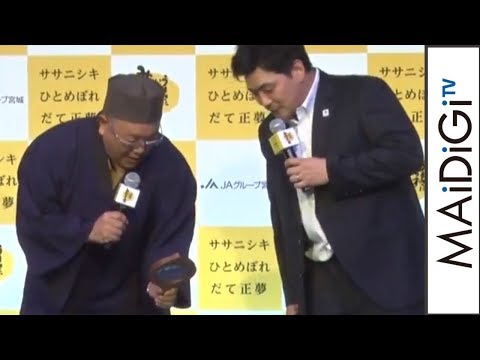 お笑いコンビ「サンドウィッチマン」の伊達みきおさんと富澤たけしさんが10月18日、東京都内で行われた「平成30年産宮城米PR発表会」に登場した。発表会では、2人が出演するCMも披露された。