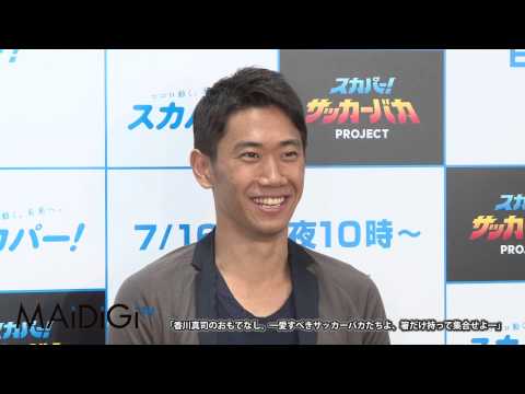 サッカー日本代表・香川真司選手(マンチェスターU)が7月7日、東京都内で行われたイベント「スカパー!サッカーバカPROJECT」の第一弾となる「香川真司のおもてなし。-愛すべきサッカーバカたちよ、箸だけ持って集合せよ-」に登場した。